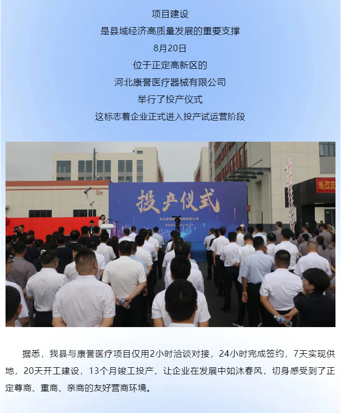 正定融媒發布:河北康譽醫療器械有限公司在正定正式投產!