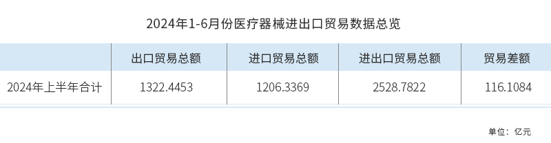 2024年1-6月份中國(guó)醫(yī)療器械進(jìn)出口貿(mào)易總體情況