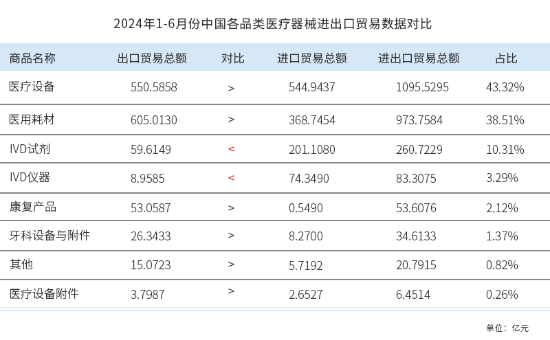 2024年1-6月份,中國(guó)醫(yī)療器械進(jìn)出口貿(mào)易詳情——產(chǎn)品品類